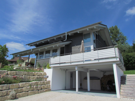 Unsere Holzskelettbauweise ist auch für sehr steile Hänge, in Kombination mit massiven Bauteilen, ideal. Sie ist ebenfalls perfekt zum Erschaffen großer Balkone und Terrassen geeignet, von denen aus Sie Ihre Aussicht genießen können.